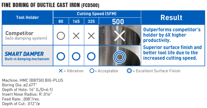 Smart Damper technology not only eliminates vibration-induced variations that would otherwise require extensive secondary honing operations, but also allows operators to bump up speeds and feeds for more manageable cycle times.
