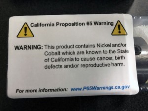 With respect to Prop65, our hardmetal and tooling/workholding products contain cobalt and nickel which are known to the State of California to cause cancer. Our products will have labeling consistent with the regulations. As of October 1st, all our products that are shipped to California will include the following label:
