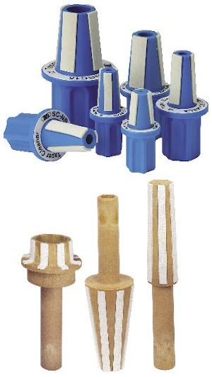 External toolholder taper cleaners are available for most common spindle types. HSK, CAT and BT toolholders can have their contact surfaces quickly wiped clean.