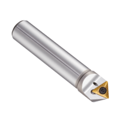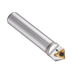 The C-Centering Cutter is a multifunction cutter capable of both spot drilling and chamfering. The coolant hole allows cooling of the cutting edge, which reaches high temperatures during spot drilling in particular and enables immediate chip evacuation.