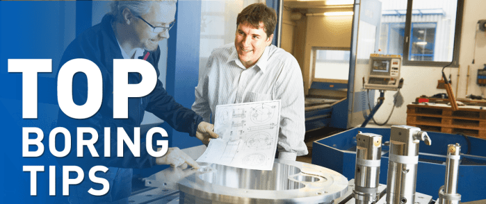 Es importante acortar tanto como sea posible su ensamble antes de poner su cabezal a maquinar. Esto significa mantener la relación de proyección o voladizo de la barra de boreado dentro de 4:1 (L:D) o lo más corta posible y seleccionar una velocidad media a la que pueda obtener operaciones de corte seguras sin sobrecargas y/o vibración. Dicho esto, nunca cambie el avance y la velocidad al mismo tiempo; esto puede generar confusión. Puede encontrar más consejos de optimización aquí.